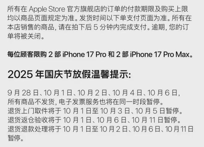 杂志sa itaas upang upang sundin ang Aming pambansang araw在帕帕拉皮特(Papalapit)中期。苹果的官方网站和TMALL旗舰店将向我们发送销售后的交付和配置通知。 ito ay ay nauugnay sa maraming mga kaibigan na naghahanda upang bumili ng mga bagong produkto tulad tulad ng iPhone 17. tingnan的哈利卡(Halika)! Sa panahon ng Pista Opisyal ng Mga Manggawa,Mayroon ding Mga Ekspresyong Kopya ng Paghahatid。 SA凉鞋Lumabas Ang Balita,Alam Namin Na Ang Operasonason ng Apple Ay印地语简单。从2025年当天的国定假日的热门提醒来看,所有产品交付服务将直接在9月28日和10月1日,2日,4日和6日暂停,电子发票的运行也将被暂停。如果这些天您的订单意外下降,您只能等待交货时间延迟。 ngunit huwag mag -panic。交货将在10月3日,5日,7日和8日正常。似乎苹果仓库中的工人是附件d这些天来,值得赞扬的是,销售后也有许多服务更改。悬架期是:现场接送:从10月1日至3日和第五次暂停。收到的退款:暂停于10月1日,6日和11日。退款处理:暂停处理将于10月1日至10月2日,6日和11日进行,从而导致退款延误,这是由于3-5个工作日退还。但是我们可以理解,仓库需要在假期期间安排休息时间。目前,Offlines Direct商店:北京Sanlitun,上海Nanjing Road,广州Tianhuan Plaza和其他商店在国定假日(10:00-22:00)以及现场支持拾取和数据MIG移民服务中正常转变。一些商店的库存有标准版本,专业系列需要提前完成。具有第三方管理局的平台:庆旺,阳光和其他频道在国庆日正常发送。 JD自我操作的物流可以在某些人中实现第二天的交付城市和某些型号(例如Pro Max 1TB)仍在库存。此外,一些受欢迎的型号具有溢价,加上橙色Pro Max 256克的价格为500-800元,512克的价格为1000-1500元,而1TB版本的价格为1500 yuan的最高价格。标准版本的价格较小(约50元)并且有库存。说到iPhone 17系列,价格和调整一直是每个人注意的重点。尽管目前我们主要谈论销售后的调整,但我们也知道新产品应该具有独特的美感。新的芯片,更好的相机,甚至眼睛外观设计。为了这个希望,为什么不等待几天之内送货呢?总体而言,苹果目前的通知提醒人们,那些准备在国庆日购买新产品的人。虽然交货后进行了一些调整,但只要我们提前计划,它就不会影响我们对新手机的乐意使用。亲爱的读者,您期待什么m iPhone 17系列?欢迎在评论区域留言以分享您的观点〜